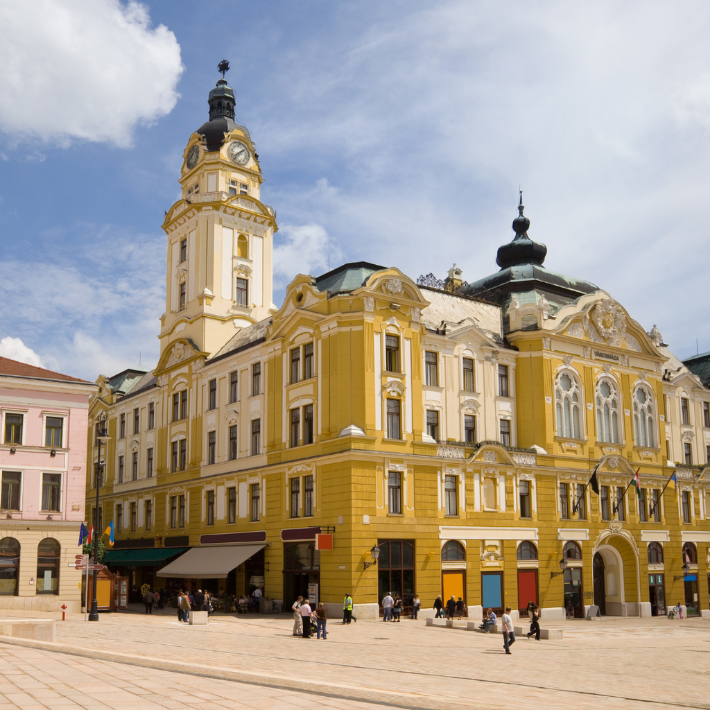 primjer osmanske arhitekture uklopljene u kršćanski kontekst, glavni gradski trg Széchenyi na kojemu se smjestio božićni sajam sa više od 60 kućica koje nude rukotvorine, božićne ukrase, keramiku i razne lokalne proizvode. Gastronomska